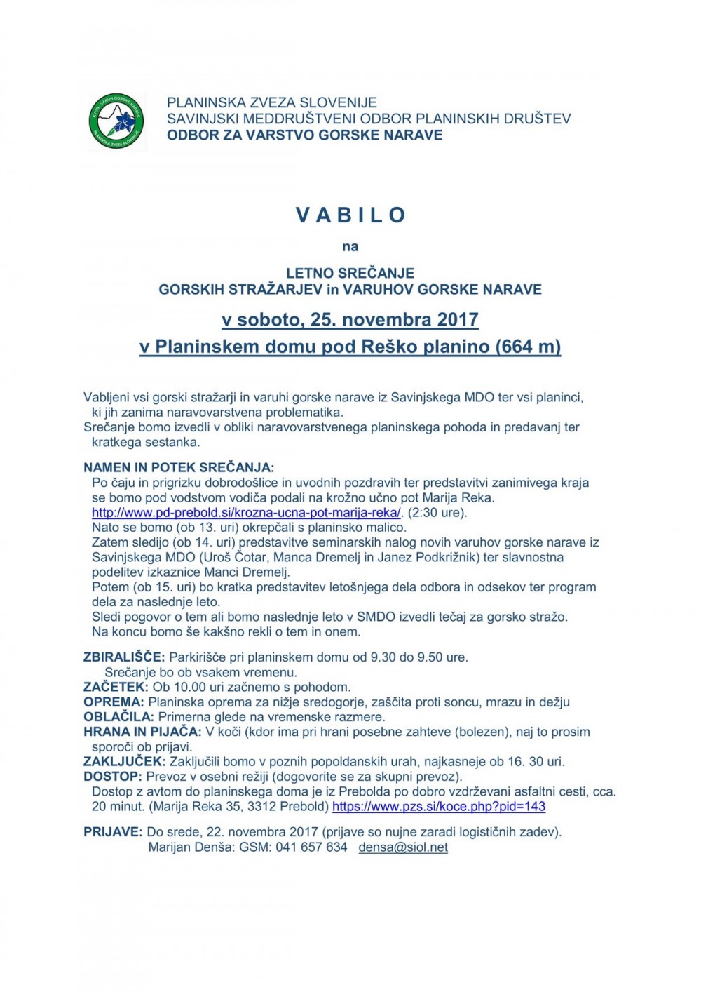 25.11.2017 / Srečanje, ogledov: 2959 Srečanje gorskih stražarjev in varuhov gorske narave MDO PD Savinjske | Vrsta dogodka | Srečanje | Območje | Posavsko hribovje | Kdaj | 25.11.2017 9:30, pred Planinskim domom na Reški planini | MDO PD | Savinjski MDO PD |