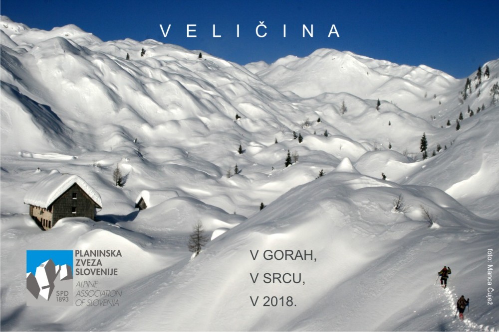 nedelja, 31. december 2017 ob 12:00, ogledov: 14409 V e l i č i n a 2 0 1 8Avtor: Manca Ogrin | | V e l i č i n a. V gorah, v srcu, v 2018. |  |