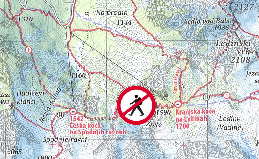Aktiven podor je uničil varovala, zato prehod ni možen. Obiskovalcem Ledin svetujejo obhod zaprtega dela po Slovenski poti ali po lovski poti. Enako za vse, ki se želijo iz Ledin podati proti Češki koči na Spodnjih Ravneh. |