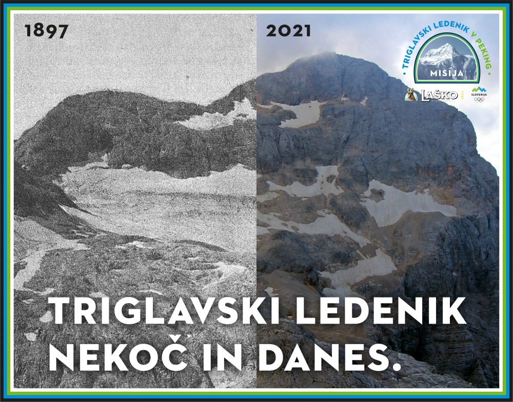 sreda, 9. februar 2022 ob 10:00, ogledov: 2702 Triglavski ledenik nekoč in danes v retrospektivni razstavi na prostemAvtor: Manca Ogrin | | Potujoča razstava z naslovom Triglavski ledenik nekoč in danes je del projekta Misija: Triglavski ledenik v Peking in nazorno ponazarja spreminjanje našega gorskega sveta v zadnjih desetletjih, ki je posledica podnebnih sprememb. Do 13. februarja je na ogled v Ljubljani, nato v Mariboru in od 21. februarja v Mojstrani. | Medtem ko se delček Triglavskega ledenika - Toli v Pekingu pred očmi globalne olimpijske javnosti tali v ledeniško vodo, se v Ljubljani začenja retrospektivna razstava na prostem z naslovom Triglavski ledenik nekoč in danes. S serijo svetlobnih vitrin razstava nazorno prikazuje spreminjanje Triglavskega ledenika od leta 1897 do danes. Potujoča razstava bo od 7. februarja najprej na ogled v Ljubljani in nato teden dni kasneje v Mariboru. Nazadnje bo 21. februarja postavljena pred Slovenskim planinskim muzejem v Mojstrani. Tja bosta soorganizatorja Misije: Triglavski ledenik v Peking - OKS in Pivovarna Laško Union, ki je z blagovno znamko Laško pobudnica projekta - po zaključku ZOI v Pekingu prepeljala staljeno ledeniško vodo.