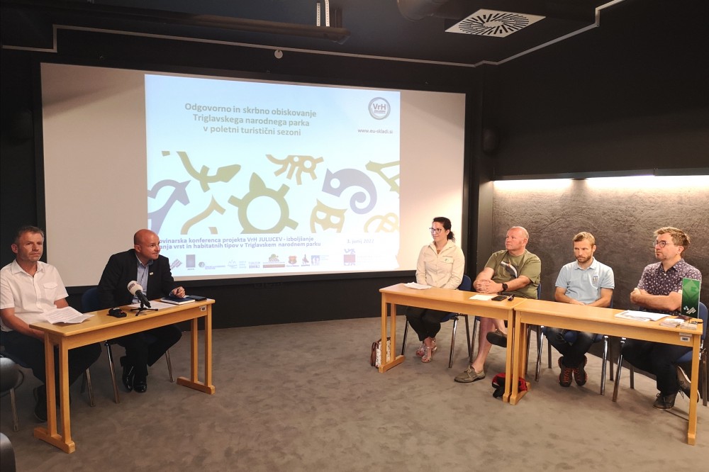 petek, 3. junij 2022 ob 13:30, ogledov: 3418 Za ohranjanje narave Triglavskega narodnega parka prilagajamo svoje navade| Avtor: Manca Ogrin | | Partnerji projekta VrH Julijcev so pred začetkom poletne sezone, 3. junija na Bledu, predstavili deset praktičnih napotkov za odgovorno in skrbno obiskovanje narave Triglavskega narodnega parka. Med številnimi novostmi, ki jih omogočajo projektna sredstva, so tudi prenovljena učna pot barje Goreljek, dela pa že potekajo tudi za prenovo Pokljuške poti in nove informacijske točke Mrzli studenec. | Projekt VrH Julijcev - Izboljšanje stanja vrst in habitatnih tipov v Triglavskem narodnem parku sofinancirata Evropska unija iz Evropskega sklada za regionalni razvoj in Republika Slovenija. V projektu sodeluje 7 partnerjev iz sektorjev varstva narave, gozdarstva, kmetijstva, planinstva in turizma s ciljem izboljšanja stanja narave. Širok spekter aktivnosti vključuje prilagajanje človekove dejavnosti za ohranjanje življenskega prostora sedmih živalskih vrst, ene rastlinske vrste in treh tipičnih življenjskih okolij (habitatnih tipov) Nature 2000, ki so pomembni na ravni Evropske unije. Za vse je stanje v TNP ocenjeno kot neugodno ali slabo. Dr. Tit Potočnik, direktor JZ TNP, je poudaril, da je javni zavod pomemben vezni člen v prostoru med različnimi sektorji: "Le s tesnim medsektorskim sodelovanjem, vključenostjo lastnikov zemljišč in lokalnih skupnosti lahko uresničujemo vseh pet upravljalskih področij TNP. Različni interesi v prostoru imajo skupno točko, in sicer da želimo ohranjati naravo, ker edino to prinaša vzdržen razvoj tega prostora."