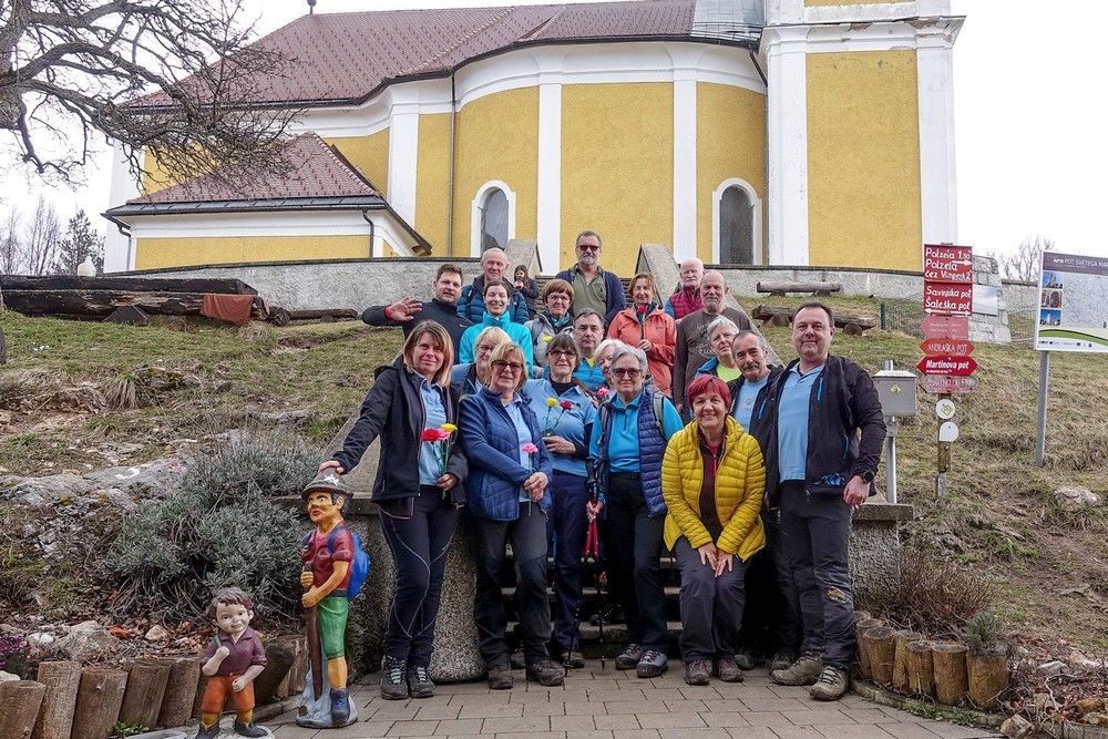 Kot veleva tradicija, so udeleženke pohoda na vrhu pred planinskim domom prejele nagelj v znak spoštovanja ob prihajajočem prazniku dneva žena. V kmečki sobi planinskega doma je vladalo prijetno vzdušje ob toplem zeliščnem čaju iz kuhinje. Ko smo se osvežili, smo pregledali program dela KVGN, si izmenjali izkušnje, nasvete in spomine ter tudi nekaj strokovnega gradiva s področja varovanja gorske narave. Sledil je ogled cerkve sv. Križa in podzemnega svetišča, ki so ga udeleženci, ki so bili tu prvič, opazovali z začudenjem.