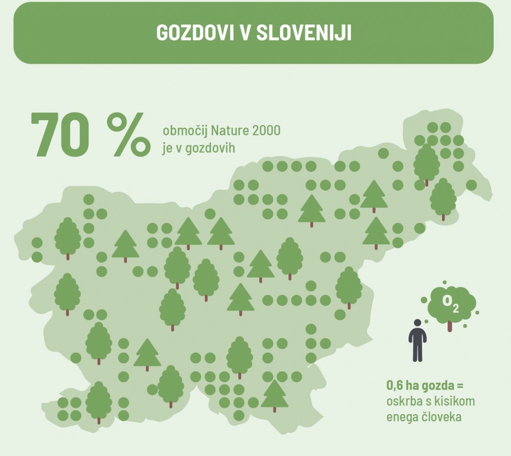 Gozdovi pokrivajo 58 % Slovenije. Območja Nature 2000 pokrivajo malo manj kot polovico slovenskih gozdov. Več kot dve tretjini slovenskih območij Nature 2000 je v gozdovih (70 %). V slovenskih gozdovih prevladujejo listavci (55,7 %), 44,3 % je iglavcev. Med drevesnimi vrstami prevladujeta bukev (33 %) in smreka (30 %). V gozdovih v območjih Nature 2000 pa se ukrepi pogosto načrtujejo za vrste hroščev (npr. bukov kozliček) in gozdnih ptic (divji petelin, koconogi čuk, triprsti detel) - za katere so tudi predstavljeni ukrepi v izobraževalni seriji.