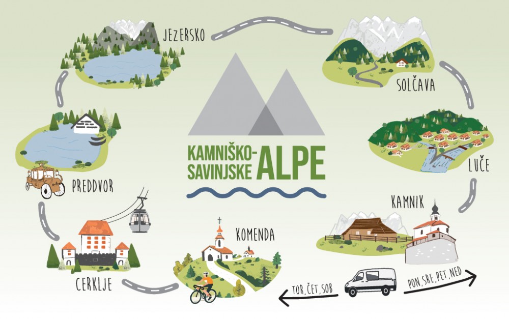 sreda, 3. julij 2024 ob 07:00, ogledov: 3344 Letošnje poletje odkrivajte Kamniško-Savinjske Alpe s hop on-hop off prevozomAvtor: Manca Ogrin | | Potovanje okrog Kamniško-Savinjskih Alp bo tudi letos poleti preprosto in trajnostno. Obiskovalci in domačini se boste namreč na pot lahko odpravili z organiziranim krožnim prevozom, ki bo med 22. junijem in 1. septembrom vozil vse dni v tednu. Letošnja novost je nekoliko spremenjena trasa, saj bo kombi ustavljal tudi v občini Komenda. | Kamniško-Savinjske Alpe so izjemno slikovit del alpskega sveta in predstavljajo osupljivo kuliso za raznolike aktivnosti ter raziskovanje narave. Ob rastočem turističnem in lokalnem prometu, predvsem v času poletne sezone, pa je zagotavljanje okolju prijaznejšega načina premikanja na tem območju osrednja želja sodelujočih občin.