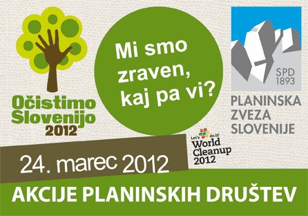 24. marca 2012 bo drugič v zgodovini Slovenije organizirana vseslovenska prostovoljska okoljska akcija. Prostovoljci že vse od akcije leta 2010, ko smo skupaj z združenimi močmi očistili Slovenijo v enem dnevu, zbirajo lokacije divjih odlagališč in jih vnašajo v digitalni register.