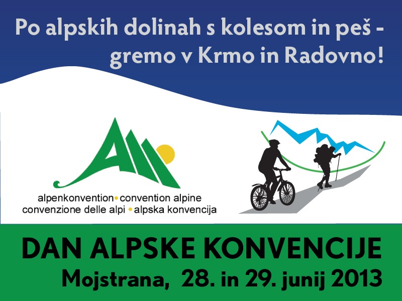 ponedeljek, 17. junij 2013 ob 00:00, ogledov: 10583 Po alpskih dolinah s kolesom in peš – iz Mojstrane v Radovno in Krmo!Planinsko društvo Dovje - Mojstrana | | | Avtor: Zdenka Mihelič | | Vabljeni na 4. Dan Alpske konvencije v organizaciji PD Dovje-Mojstrana, TNP, PZS, Cipre Slovenija, SPM in Hiše pr Katr ob sodelovanju z Ministrstvom za infrastrukturo in prostor ter Stalnim sekretariatom Alpske konvencije. Osrednji dogodek bo 29. junija 2013, ko organiziramo rekreativno kolesarjenje iz Mojstrane v Radovno in Krmo, pohod do Pocarjeve domačije in bogat spremljevalni program pri SPM. | PO ALPSKIH DOLINAH S KOLESOM IN PEŠ - IZ MOJSTRANE V RADOVNO IN KRMO!