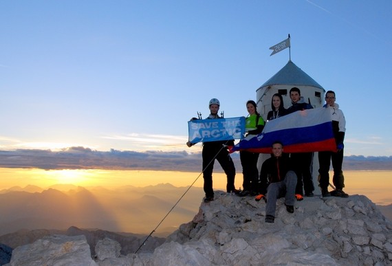 V domu smo se rešili prepotenih oblačil, se odžejali ter se pogreli s toplo joto. Sledil je kratek nočni počitek, nabrali smo moči za naslednji dan. Zjutraj smo se že ob petih odpravili proti Triglavu. Presenetljivo na tem podvigu nismo bili sami, že od daleč se je namreč v temačni skalnati gmoti videlo kar nekaj lučk. Najprej smo morali preplezati steno, da smo prišli na vrh Malega Triglava. Jutranja zarja je bila že zadosti svetla, da smo pot nadaljevali brez umetne osvetlitve. Pot smo nadaljevali po grebenu in se hitro približevali vrhu, na katerem je bil že od daleč viden Aljažev stolp. Malo preden smo prišli na vrh, se je izza oddaljenih hribov prikazalo oranžno sonce in nam na obraze priklicalo širok nasmeh. V teh trenutkih smo vsi čutili veliko veselje, predvsem pa nas je očarala čarobna rdečkasta osvetlitev okoliških vrhov in samega Triglava. Fotoaparati v teh trenutkih seveda niso mirovali, nastalo je veliko čudovitih fotografij. Kmalu je sledil trenutek, ko smo vsi člani odprave stali na vrhu Triglava. Sledil je obvezen krst z udarcem vrvi po zadnjici in tako smo vsi postali pravi Slovenci. Osvojitev vrha je v nas prebudila občutke ponosa, izjemnega veselja in željo, da bi tak podvig ponovili še večkrat. Ob Aljaževem stolpu smo se fotografirali s slovensko zastavo in s transparentom Greenpeace-a »Save the Arctic« (slov. rešimo Arktiko).